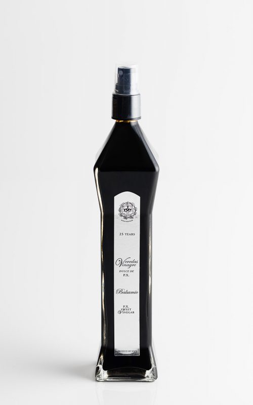 VinagresSecreto del Chef Ficha Analítica Grado alcohólico: 0° Variedad de uva: Pedro Ximénez. Producto obtenido según recetas ancestrales, a partir de zumo de uva pasificada Pedro Ximénez, reducido a fuego lento. Sin aditivos, ni conservantes y 0% Alcohol. Su uso es idóneo para desayunos, almuerzos, cenas y postres. Es el toque perfecto tanto para repostería como para alta restauración.12,25€ -
